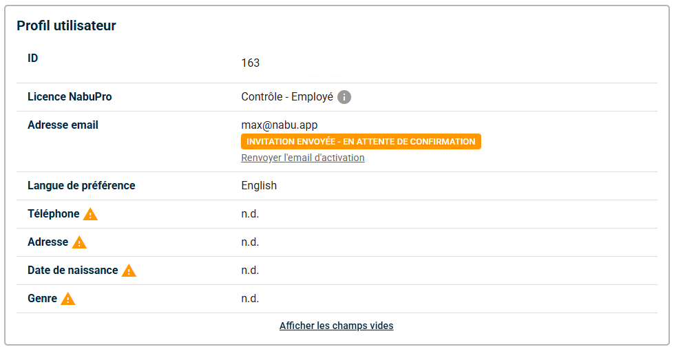 Si vous avez besoin d'aide pour configurer des champs additionnels, veuillez nous contacter à l'adresse: support@nabupro.comNOUVEAU Ajouter les documents au profil utilisateur