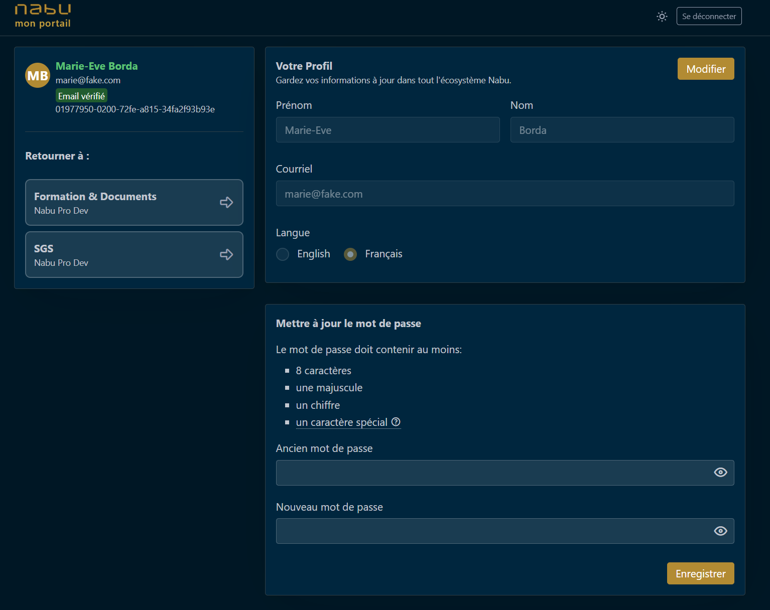 - Si vous voulez modifier vos informations personnelles, vous serez automatiquement redirigé vers un site appelé Nabu Portail, où c’est simple et rapide de faire vos changements.