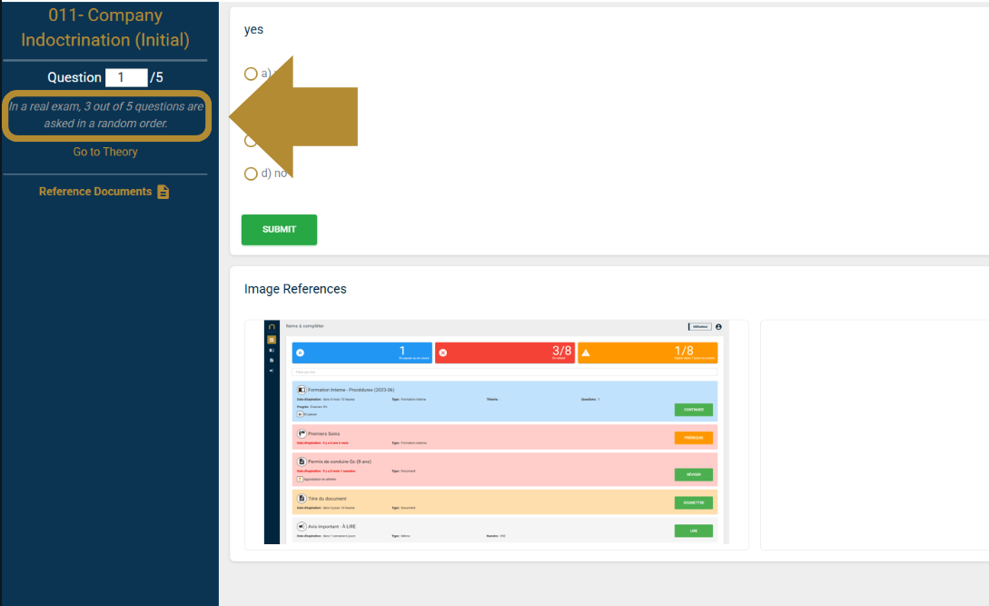 - IMPROVEMENT When a trainee is doing the theory section of a training, he is now able to access the medias from the previous slides.