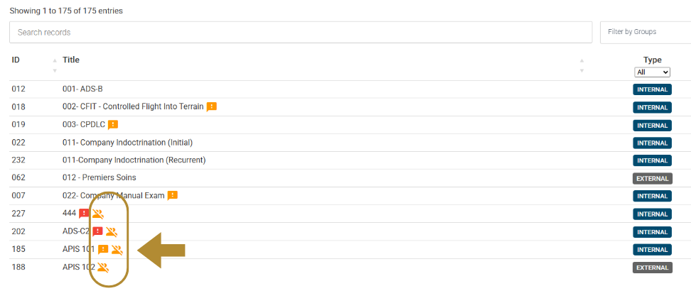 Version 2.17 introduces a new icon to clearly indicate when a user, training, or document does not belong to any group. This icon is now used consistently across all entities, helping admins quickly identify ungrouped items.
